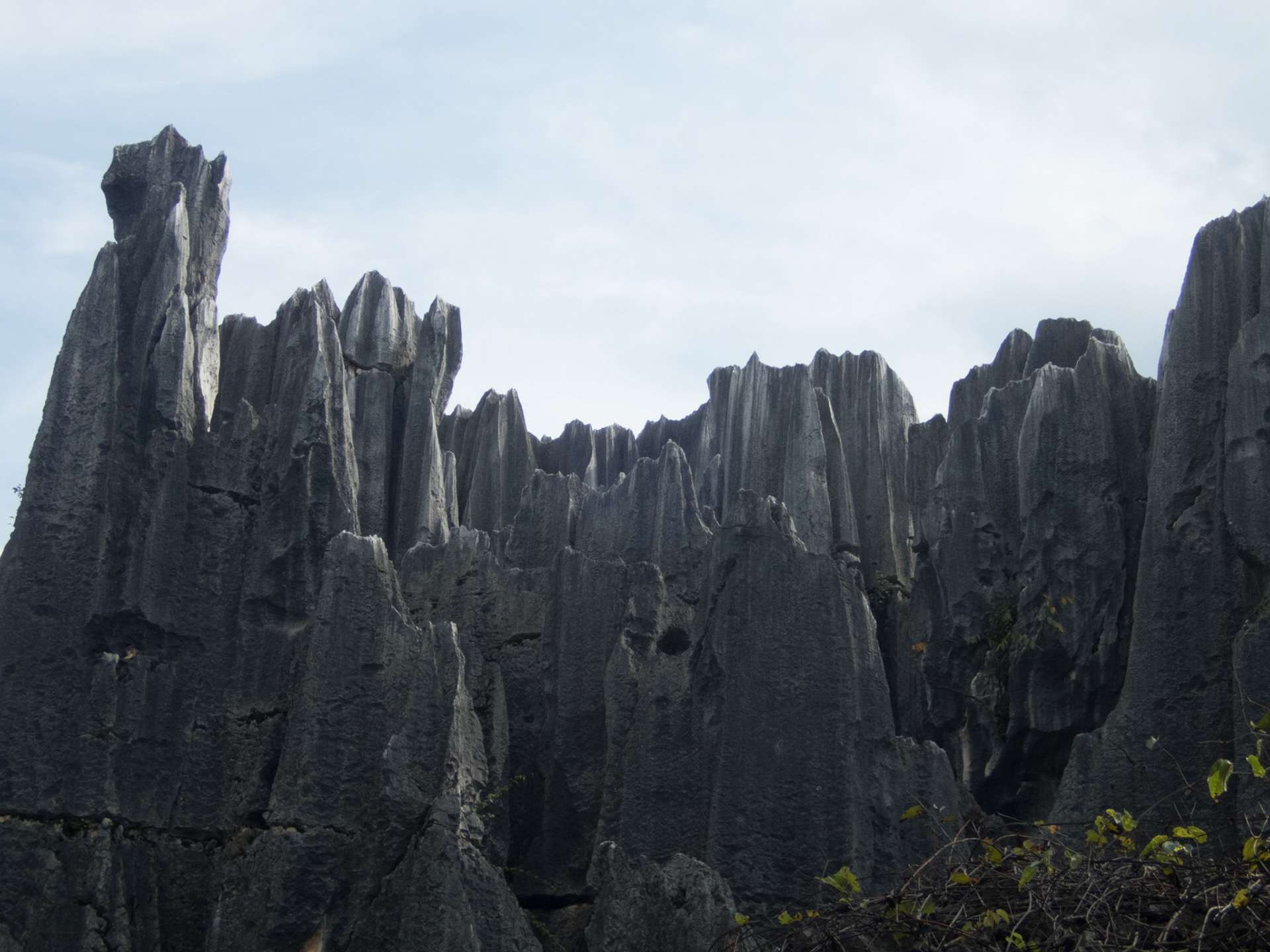 Stone Forest (Shílín, 石林) is a major tourist attraction near Kūnmíng (昆明). This alone should prevent you from even thinking about visiting since Chinese ideas about tourism are just repulsive. I was surprised to like it. Visiting outside of main season, the place is deserted and mostly silent. The valley is diverse and large enough for you to get some walk. Chill out.